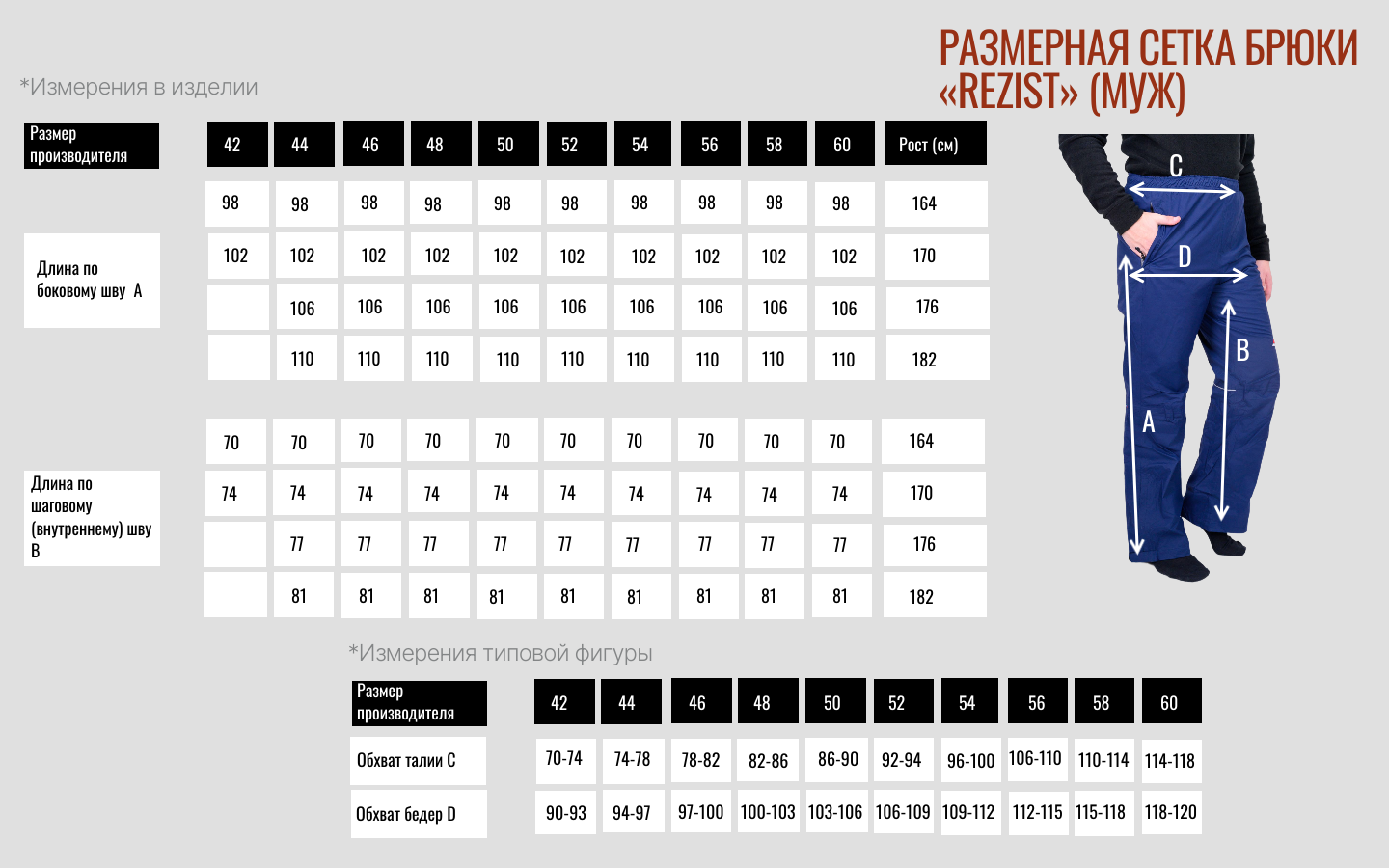 - Флуорисцентная вставка на задней нижней части брюк для безопасности
